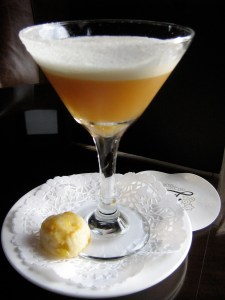 It’s a mix of ice wine, vodka, Contreau, tea, lemon and orange bitters. And that’s what it was. Bitter. So John-my-waiter, who now places in the top 20 of my friends, suggested I try the Empress 1908-10. If you know me, it doesn’t take much to twist my arm for another drink… so I did.