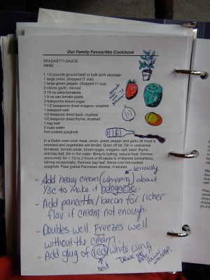 Recipe above is spec. I use it as a loose guideline. I couldn’t tell you how I make it exactly because it changes each time I make it. I don’t measure for a starter. I add heavy cream to make it a more authentic bolognese sauce. Sometimes I will add white wine, or red wine. If I have a stick of celery or a carrot in the crisper, I might add that too. If I have pancetta or regular bacon, I’ll cook up that and add it at the beginning with the beef/pork sausage. One thing I add that is not on the list, without fail, is a few fennel seeds while cooking it, and a bunch of grated parmesan when serving.