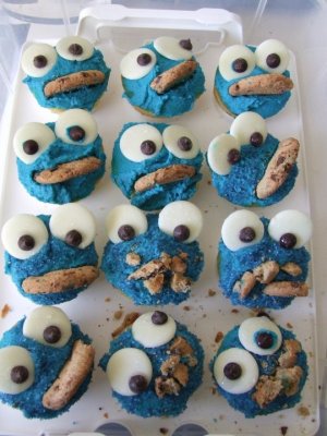 These Cookie Monsters are actually cupcakes. Genius! I could always relate to the Cookie Monster. He and I have a lot in common, particularly our appetites.