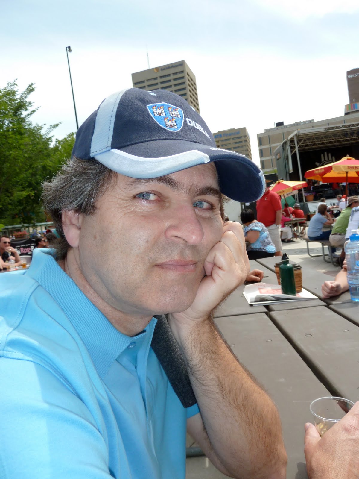 Well, things started to go downhill when we visited Churchill Square on Canada Day. The beer garden sold only beer, wine and cider. Here’s my unhappy husband sucking back a plastic glass of warm white wine.