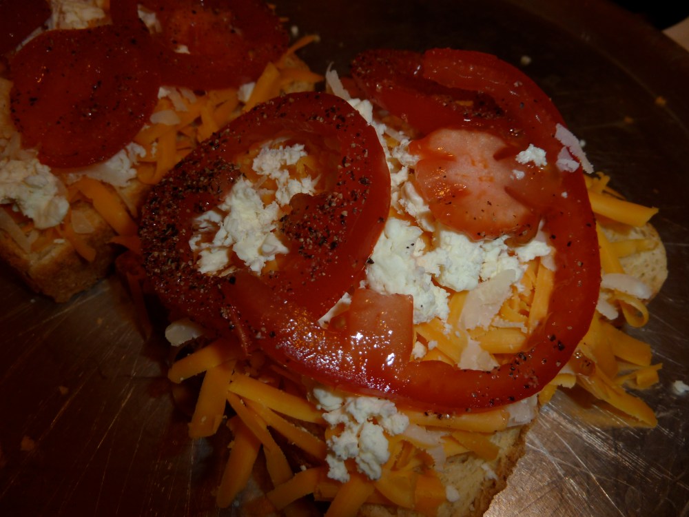 Nothing in the world is more satisfying than a broiled cheese and tomato sandwich. Add a glass of wine, Mick Jagger belting out Paint it Black, and you have a perfect end to an evening of lawn bowling. Okay okay okay, there are a ton more things in the world more satisfying than that, and those things don’t usually involve food. However, for tonight, it’s broiled cheese and tomato and the Rolling Stones.