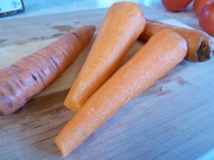 If you read yesterday’s post, you know I have a cold. In my effort to cure my cold, I bought some ginger yesterday, and the root was so pretty I bought the entire thing, which means, I have 1 kg of ginger to work though. Carrots and ginger go well together, so I thought I’d give it a try in my tomato soup.