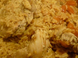 This was followed by cooking up a Riso con Pollo (chicken ‘n rice) dish from that old favourite, the Urban Peasant. Remember him? James Barber? This dish was delicious, save the chicken. I don’t know if you remember a few posts ago, but I froze some chicken thighs and whoopsie fricken daisy, I forgot to stick them in a freezer bag in a timely manner. The chicken thighs were slightly freezer burnt, and were tough as leather in the dish. Chicken aside (actually far aside as in the garbage), the rice was delicious and extremely flavourful, being a mix of long grain rice, white wine, onion, garlic, and tomatoes.