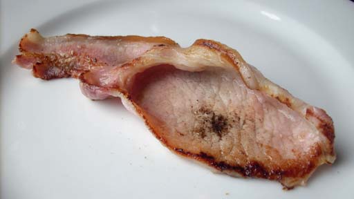 What you see above is a rasher of English bacon, or proper bacon as Michael would say. I had to pinch this picture from the net because I did not have the foresight of a breakfast blog, but safe to say ours looked the same as the rasher above, and was purchased from Todd at Old Country Meats found at 6328 106 Street, Edmonton. This bacon is absolutely scrumptious. Quite a bit different in taste and smell than our regular North American “streaky” bacon, but it is just as satisfying with the right distribution of hearty meat and crispy fatty treat bits of piggy goodness.