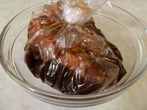 I had a few Facebook friends concerned this was for breakfast, when I commented at 7:00 a.m. that I was marinating pork, but as you can see, the pork was wrapped nicely and sat in the fridge the whole day long whilst I was at work today.