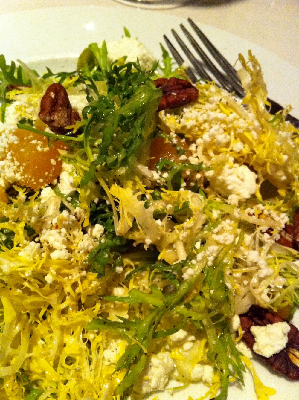 I selected a roasted beet salad, which was zingy with the vinegar, sweet with the beets, crunchy with the toasted pecans, and creamy with the goat cheese. I ate ever last morsel, and if all salads tasted that delicious I would eat salads exclusively and be thin, wear lots of jewelry, have my nails tended to weekly, and have a pet Yorkie in my purse.