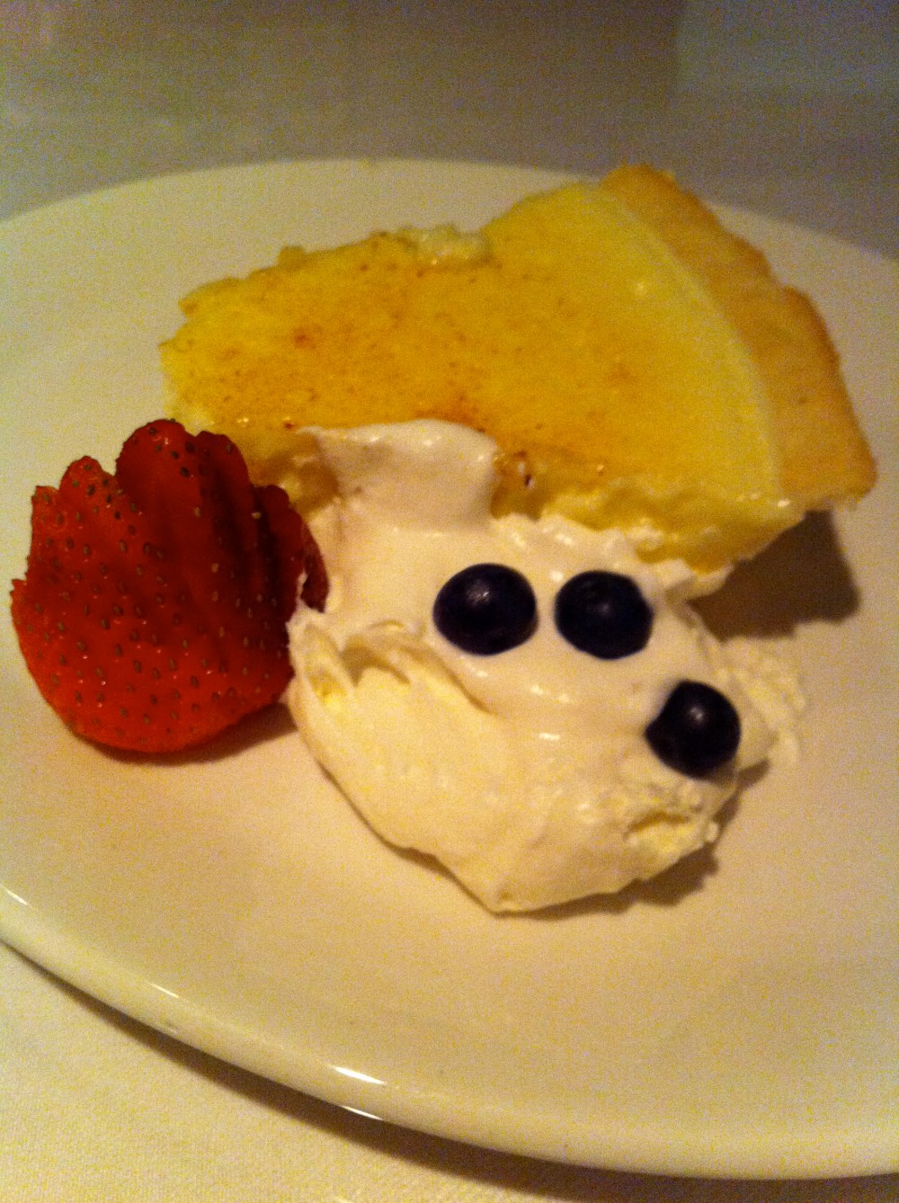 As I warmed my hands over the candle, it was time to decide on dessert. Michael will always, without fail, selected the item with lemon in it, and he followed through with a lemon tart. Michael was rolling his eyes in delight and oohing and ahhing throughout and wasn’t too generous in sharing bits of it with me.