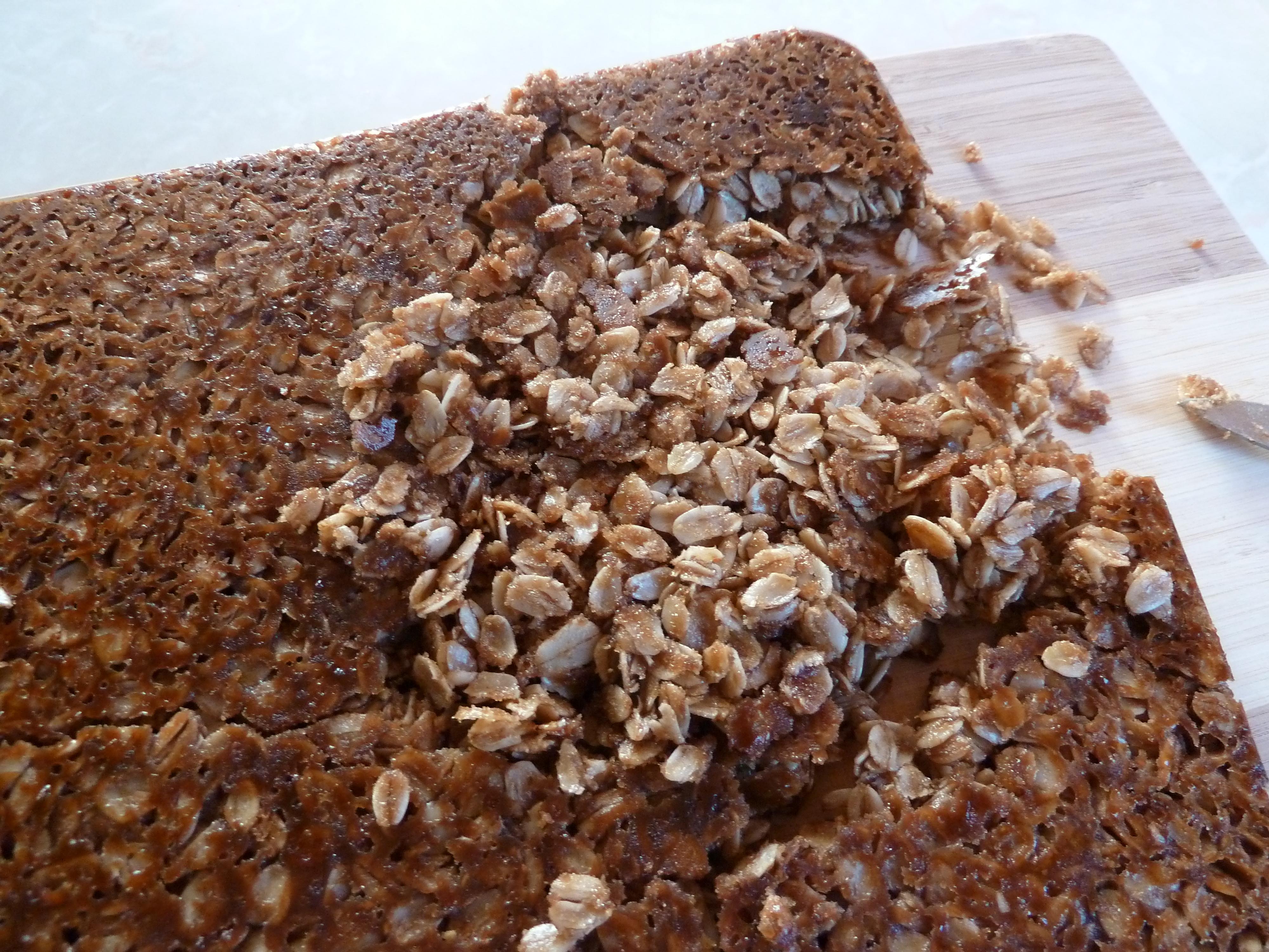 The trick with this cake is when putting it in the pan to not pack it too tightly, or you will end up with an oatmeal brittle type of creation, or, pack too loosely so you end up with this: