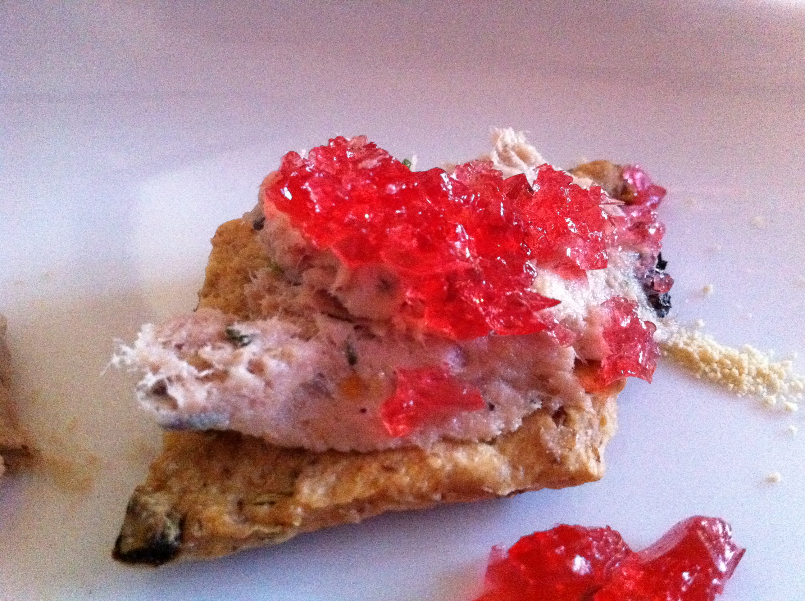 The cheeses were served with sliced baguette, lovely crackers and home-made jellies.