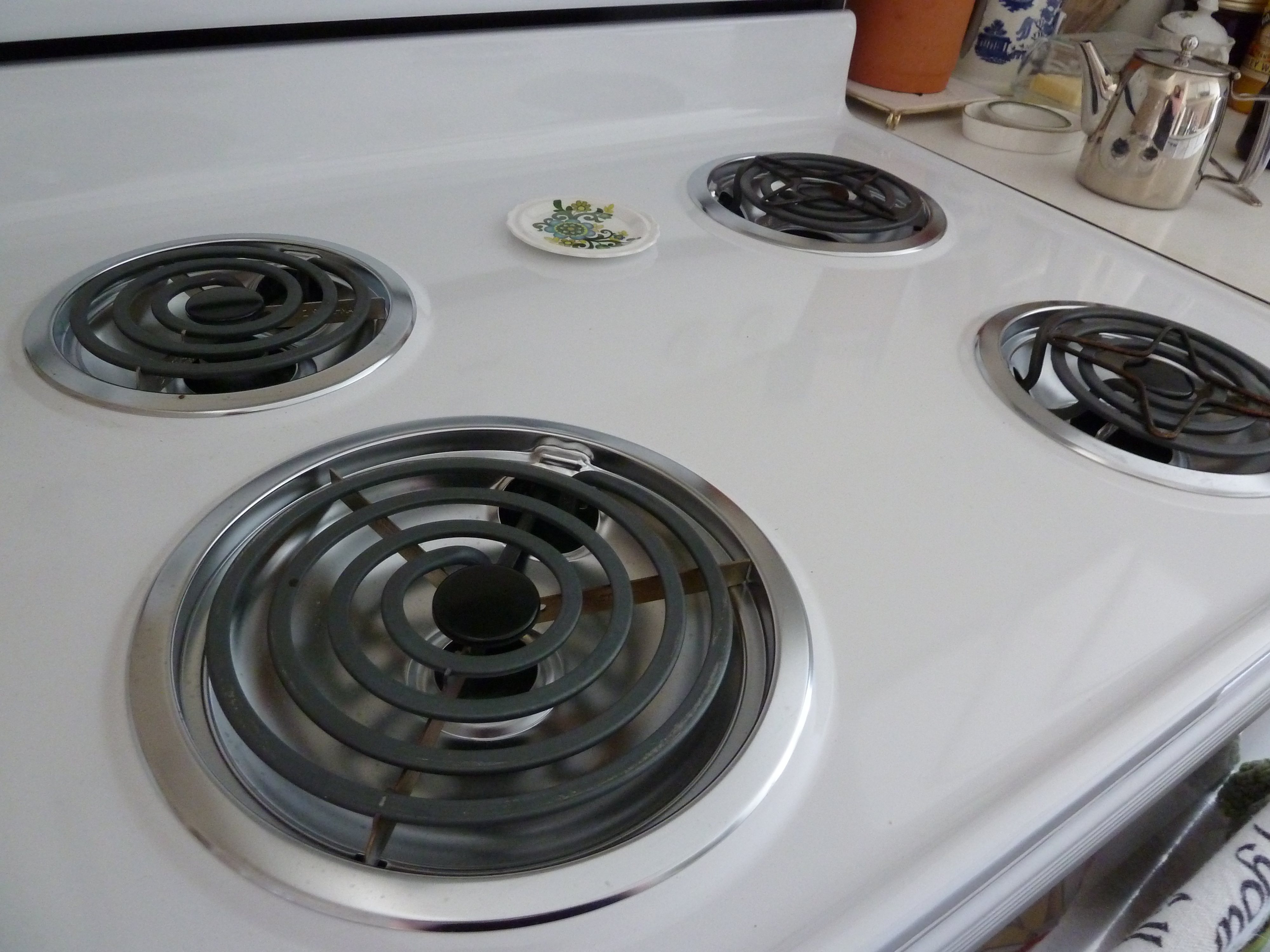 Here’s the stove I wrote about. When talking about it with my sis, she said it sounded like it had only ONE large burner. HA HA HA. Just to clarify, it has four burners, just one large one. I will learn to love it. Look how clean it still is: