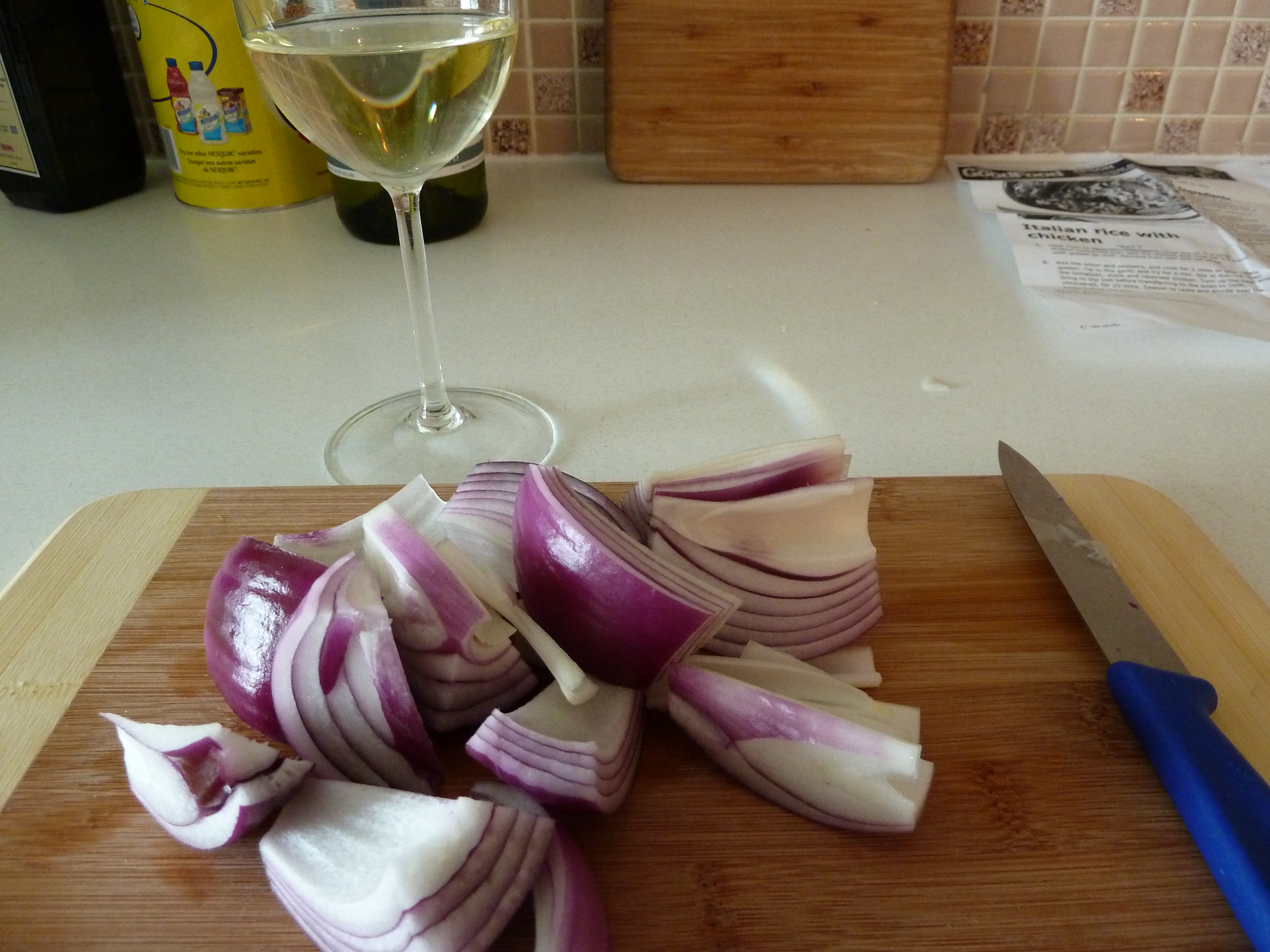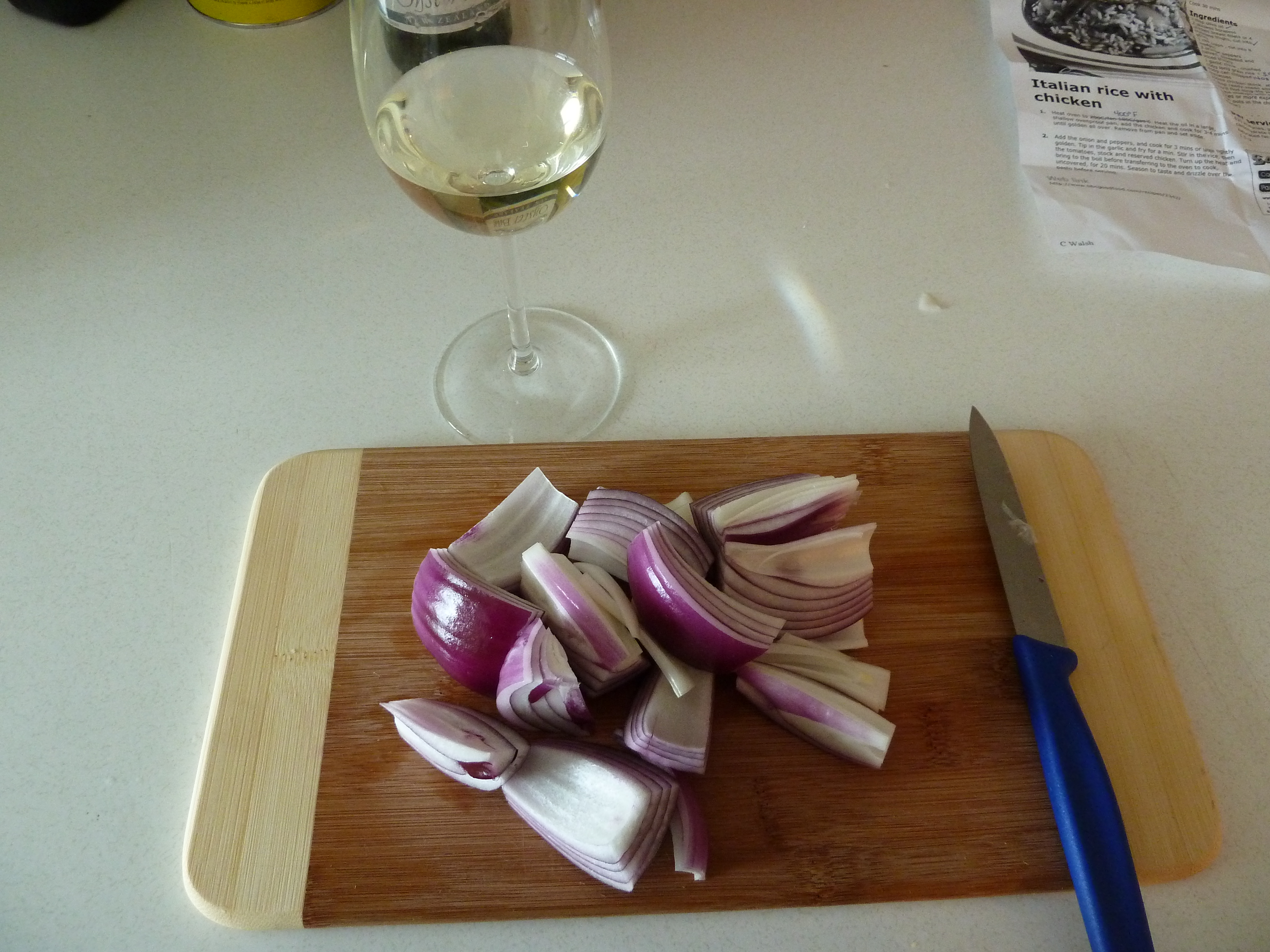 I’m taking a break from writing, and this will be a photographic journey through the creation of Italian Rice with Chicken as provided by the BBC.