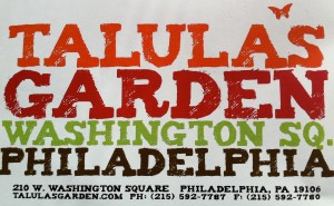 M’s sent me to Talulah’s Garden a few steps away. This place was ranked in the top 10 new restaurants in all of the USA. You can read more, see more about this cool place at these sites: Wishunu as well as at Bon Appetit.