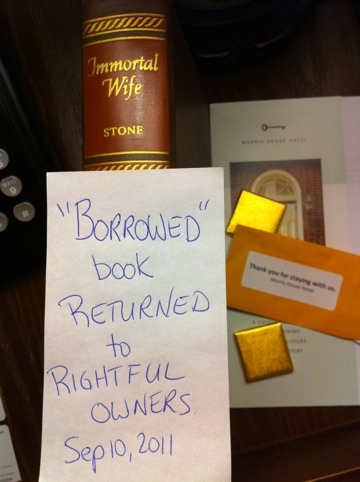 Day 2 began with me finding a place to return a book I “borrowed” from the Morris House Hotel one year ago. Last year Michael and I had a historical room with ancient books lining the walls. I pulled Irvine Stones “the Immortal Wife” thinking the title was “Immoral Wife” and it took me 3/4 of the way through the book (as well as taking it across the continent) and learning about Jesse Fremont that I realized my hope of learning about naughtiness in the quest and development of the American frontier would not happen. Jesse Fremont seemed rather pure and noble in her pursuits. My room this time around was void of books, so I neatly placed it on the coffee table next to the Where Magazine hoping it looked like it belonged.