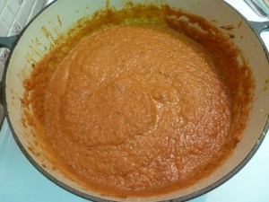Now, this might be shocking to some of you, but I whirred the whole kit and caboodle in the blender. I was looking for a sauce, not a chunky stew. So I whirred, and this is what I got: