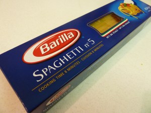 We are trying a new pasta tonight. Barilla, which we bought today instead of our usual favourite Riscossa, both found at the Italian Centre Shop.