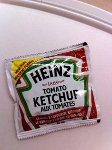 Today, when I ordered my grilled cheese (with extra orange coloured cheese I might add) and dried sad fries from the Standard Life building food court, I was excited, yes EXCITED to pick up this packet of ketchup to turn my fries into something I might actually eat: