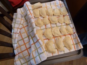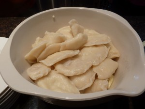 Each one of us had to sacrifice five perogies to the pot, so we could have a light lunch and taste our efforts. The rest we could take home and share as we saw fit. We were thrilled with our results and discussed our next project: cabbage rolls.