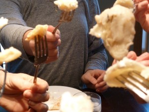 Now our Mom’s did their part this past week by carefully learning how to reduce a perogy dough recipe from 2 truck loads of flour down to 3 cups of flour. What we didn’t get in writing was the recipe for the filling. But it seems easy enough. The instructions were: