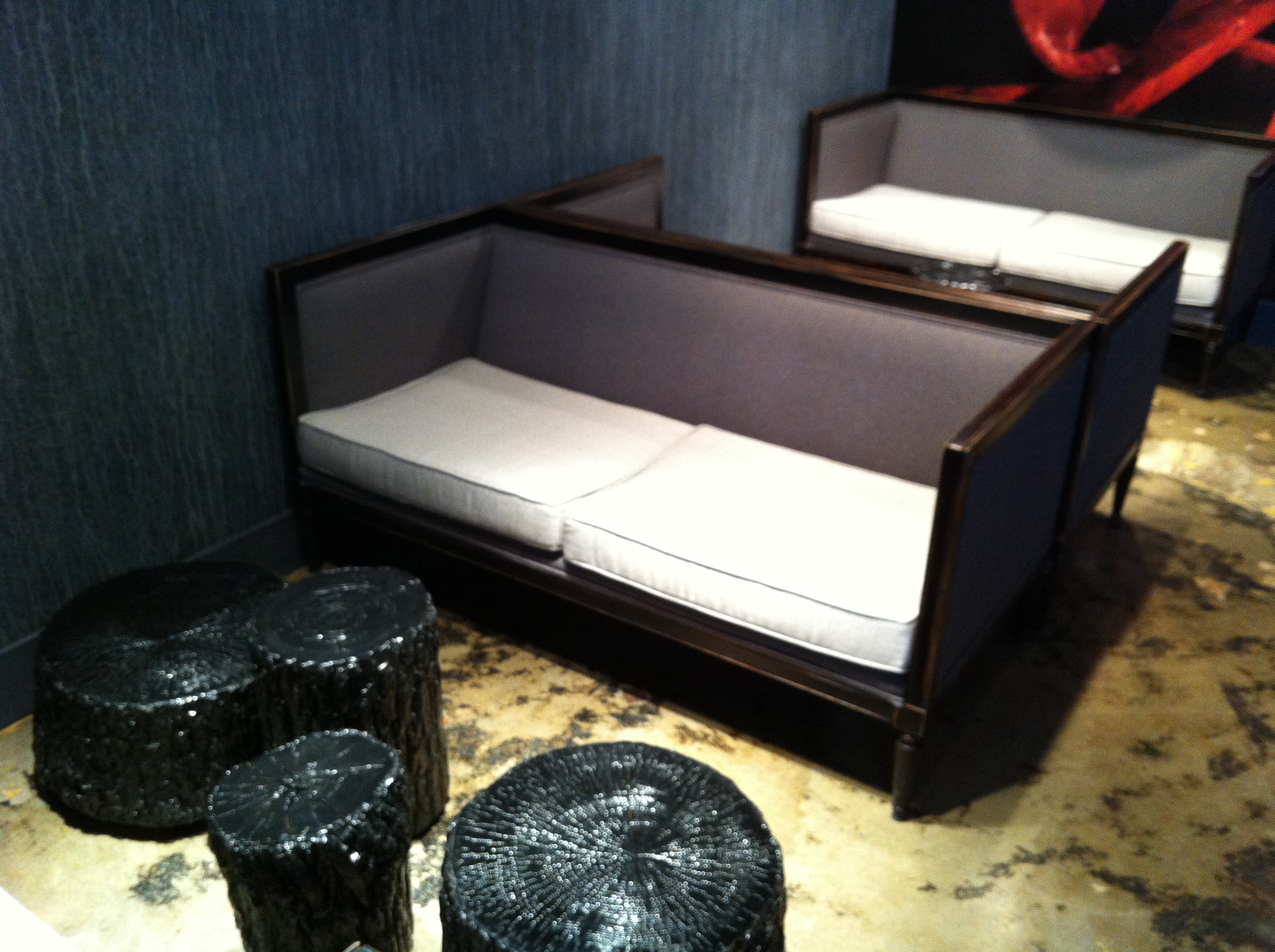 The furnishings are all unique in that some of the light fixtures are recycled salad bowls. Sofas are refreshed from Sutton Place hotel. Bar stools were former wine barrels, and have been recycled into these gorgeous, comfortable seats by Vinoture, based out of Walla Walla, Washington. It’s a small space, but the layout is welcoming, cozy, but not crowded.