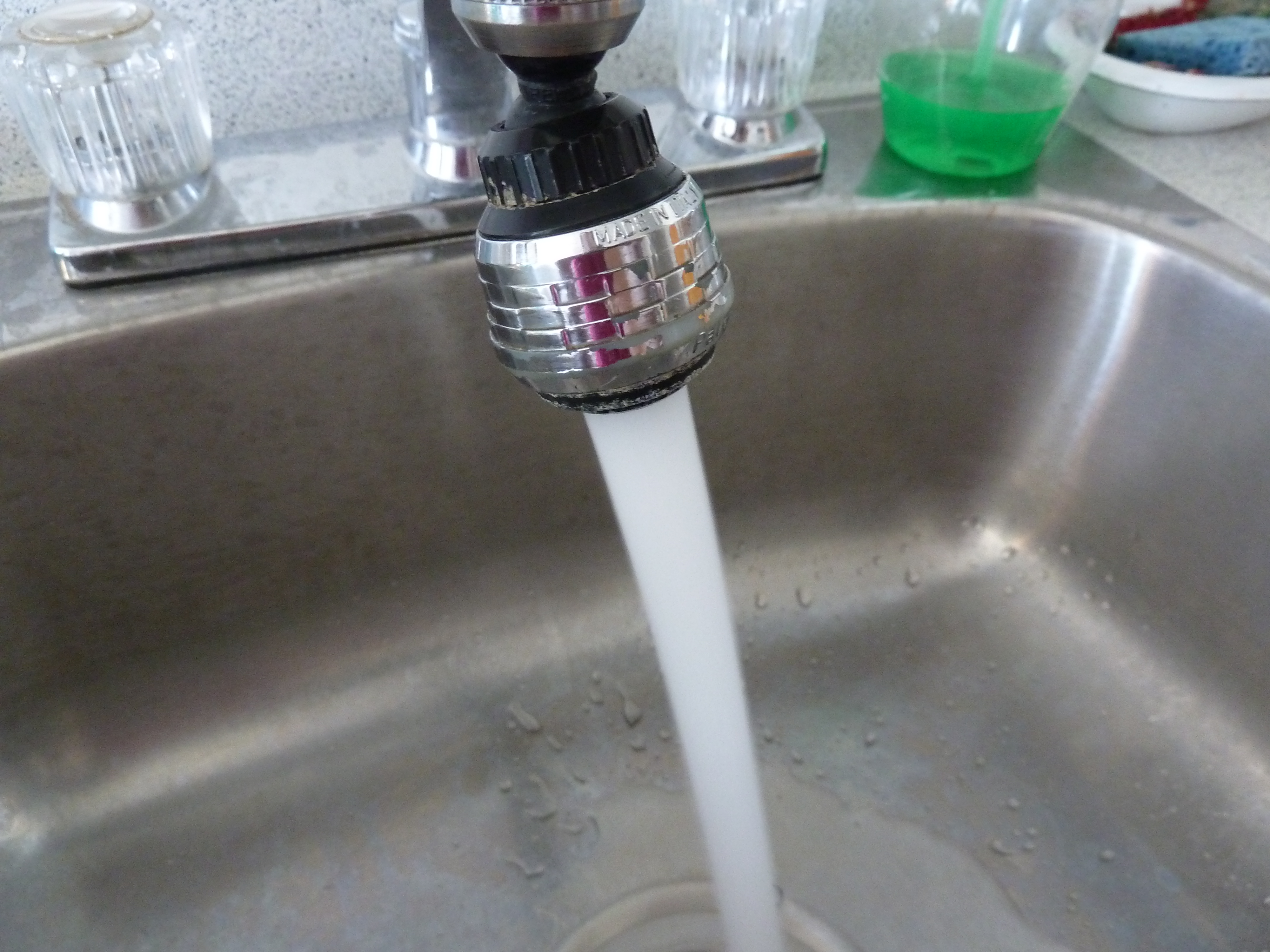 We have the plain old water option. Takes it forever to get cold from the tap, so we keep a jug in the fridge. If you are a neat-freak, I ask that you ignore our gunky spray head that we have carried with us from apartment to apartment for over 20 years.