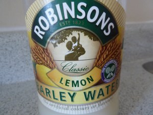 Now, if you are not a plain water sort of person, we have this option, Robinsons Lemon Barley Water (link will take you to an adorable ad from 1957, and note that the cartoon man behaves exactly as my husband does when drinking this stuff).
