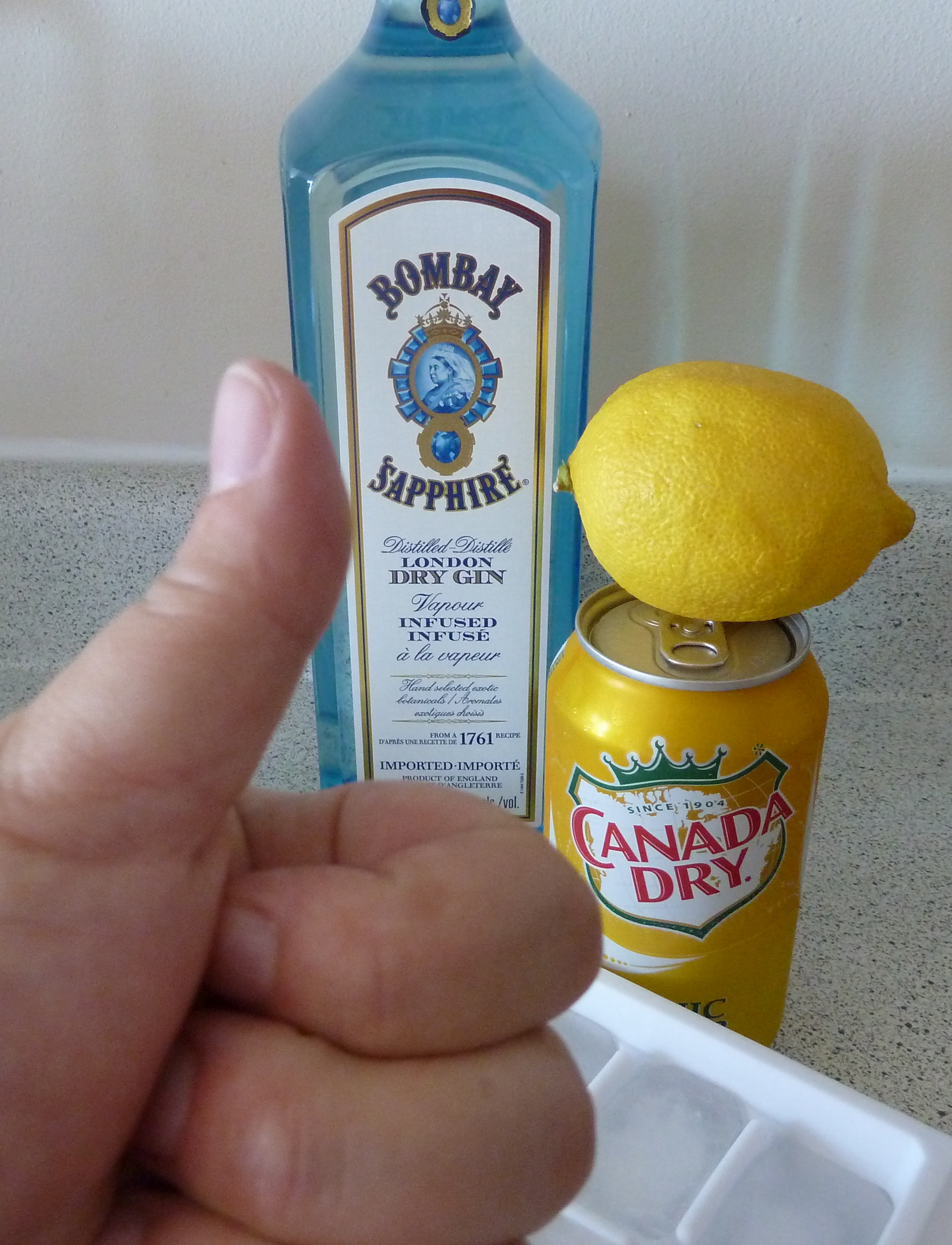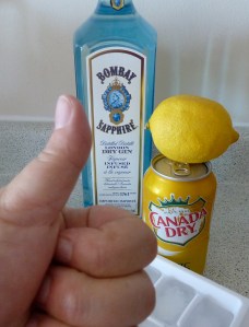 Here we go. Ahhhhh. Ice. Glass. Lemon juice. Icy tonic. Shiny new bottle of gin. But you knew this was coming, didn’t you? 😉