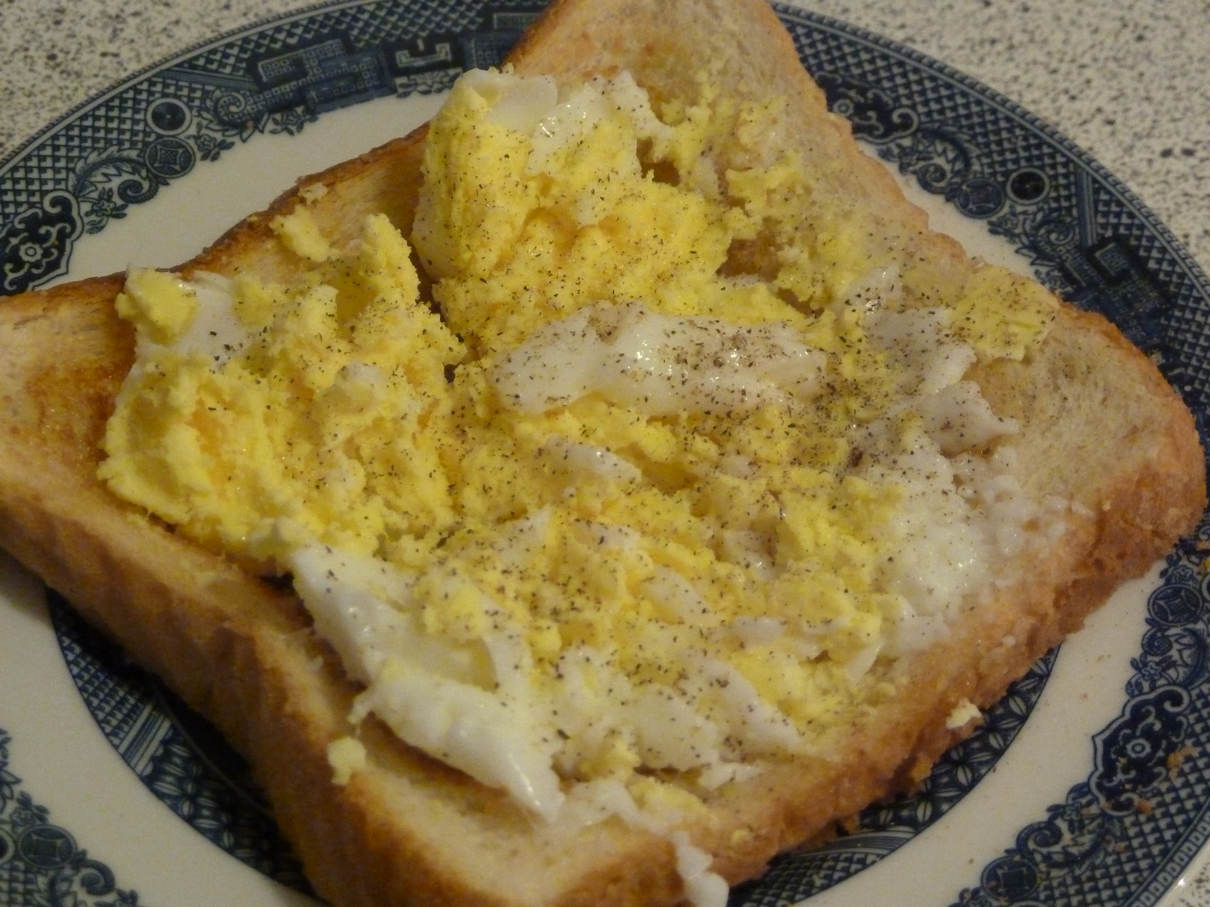 The thing of it is though, even if you aren’t a fan of a hard-cooked egg, but ARE a fan of egg salad sandwiches and want to make an egg sandwich for your own lunch, you could purposely hard-cook your poached egg, and in more than minute and less than two minutes, you could have the perfect cooked egg for the sandwich, without the bother of listening to Julia Child by boiling up a bunch of eggs, take them off the heat, cover, and let them sit for 17 minutes, and then peel and peel and peel the eggs. You couldn’t use this meal in a mug method for a church lunch of egg salad sandwiches. Nope. But for YOUR lunch, at work that day, you could.
