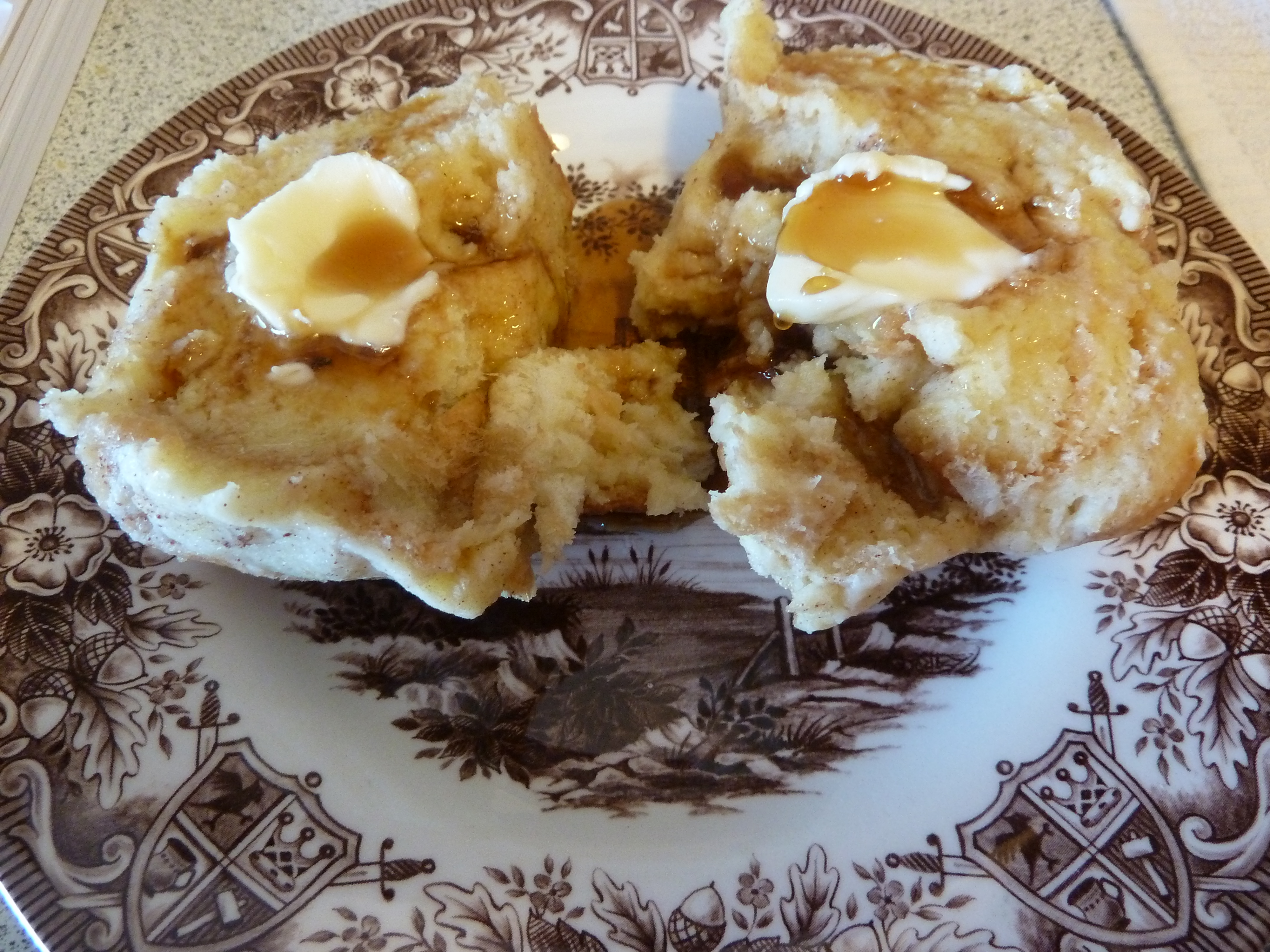 Confectioners’ (icing) sugar; pure maple syrup; butter