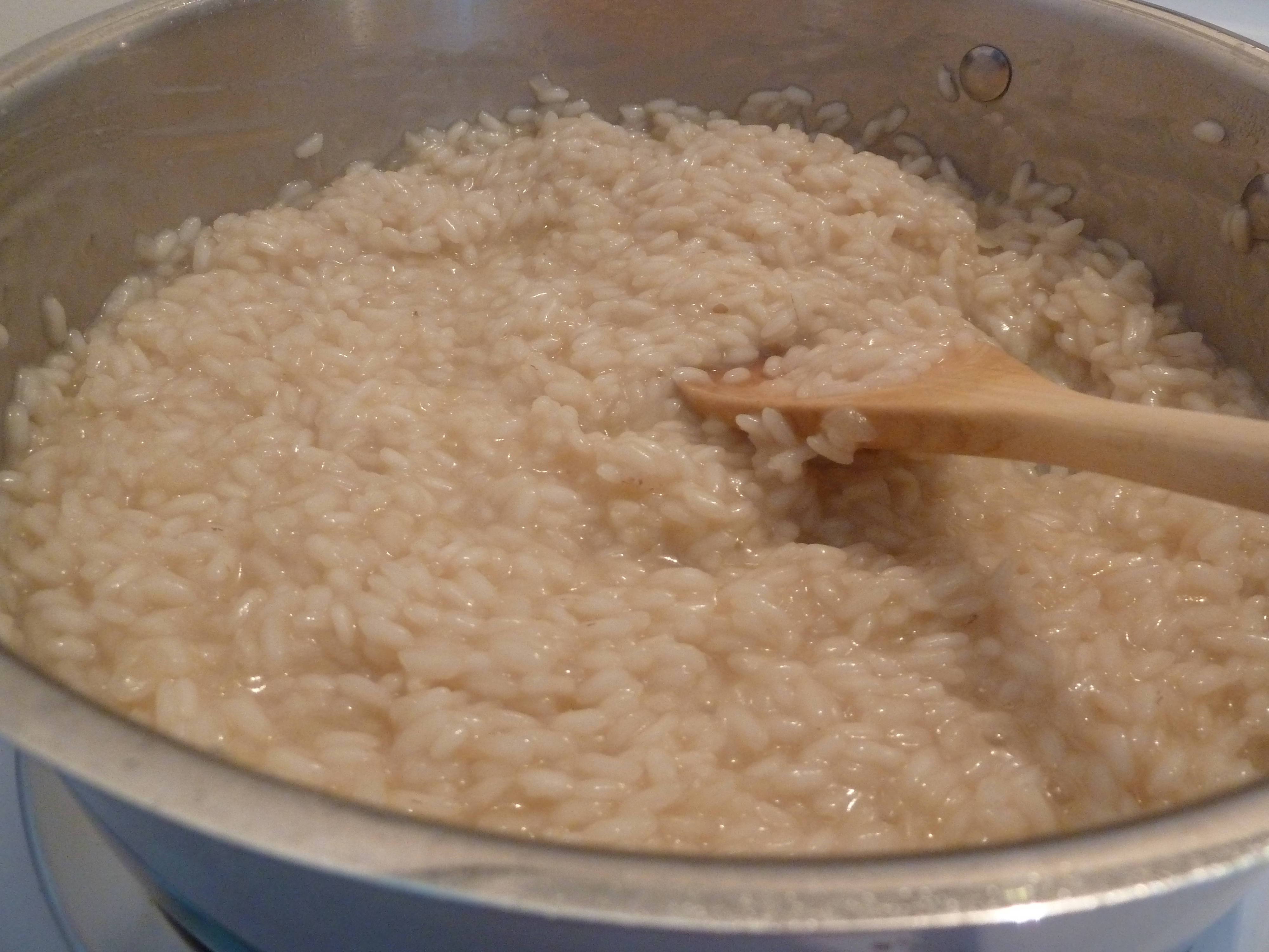 This story starts a few weeks back where a cartoon bubble with a picture of risotto gets planted in over my head and I begin to obsess. I try a few Google searches and learn the basics of how to make risotto. I learn that in its most basic form, you need special rice and time. Time dedicated to standing at the stove stirring. Nothing else.