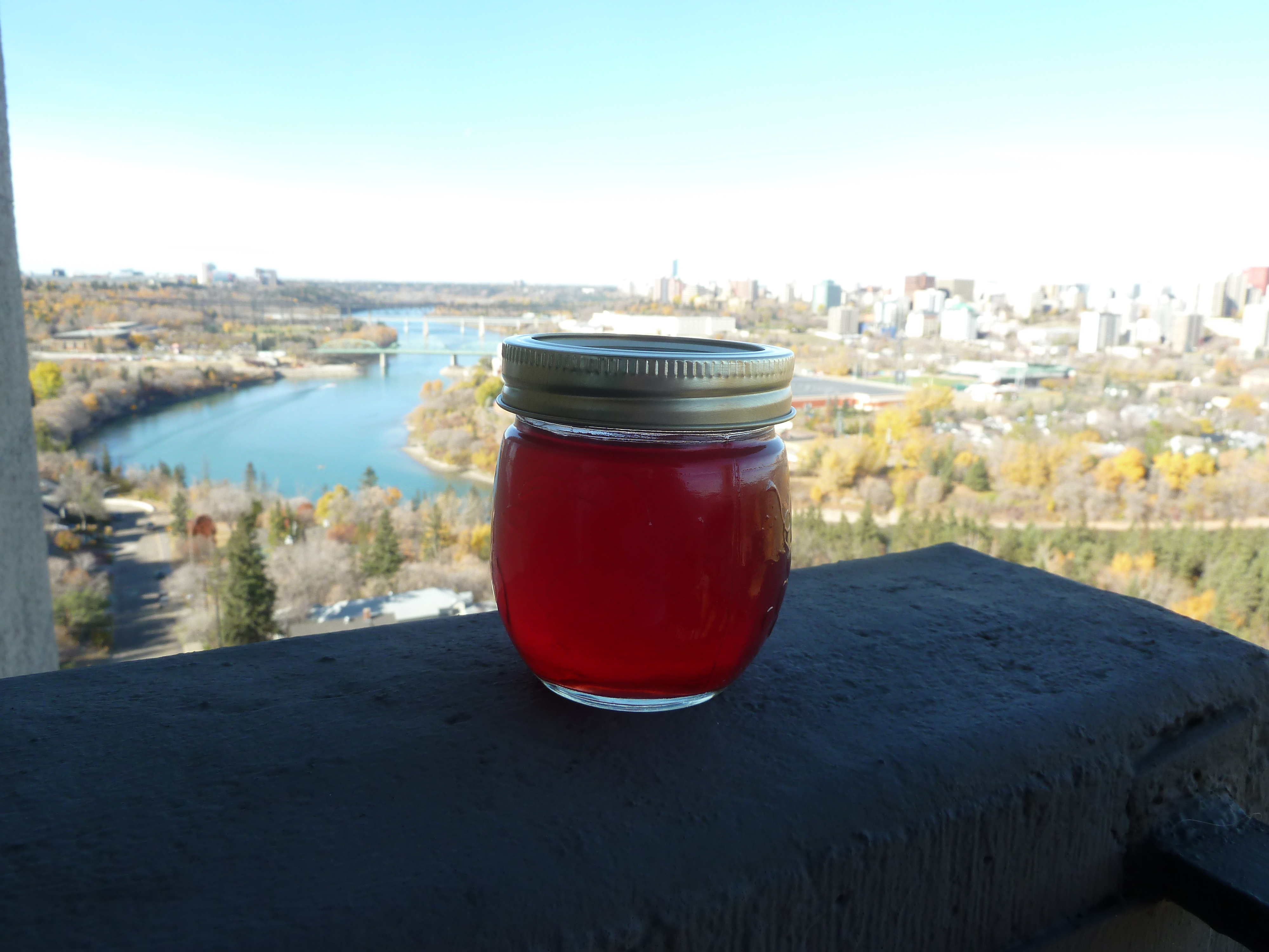 On a sunny Saturday morning, Michael carefully measures and calculates the amount of sugar required, and boils the juice and sugar mixture. Whilst this takes place the jars are sterilized, and carefully filled. Then the morning is filled with the sound of the lids popping, followed by Michael giving out a hearty cheer after each pop.