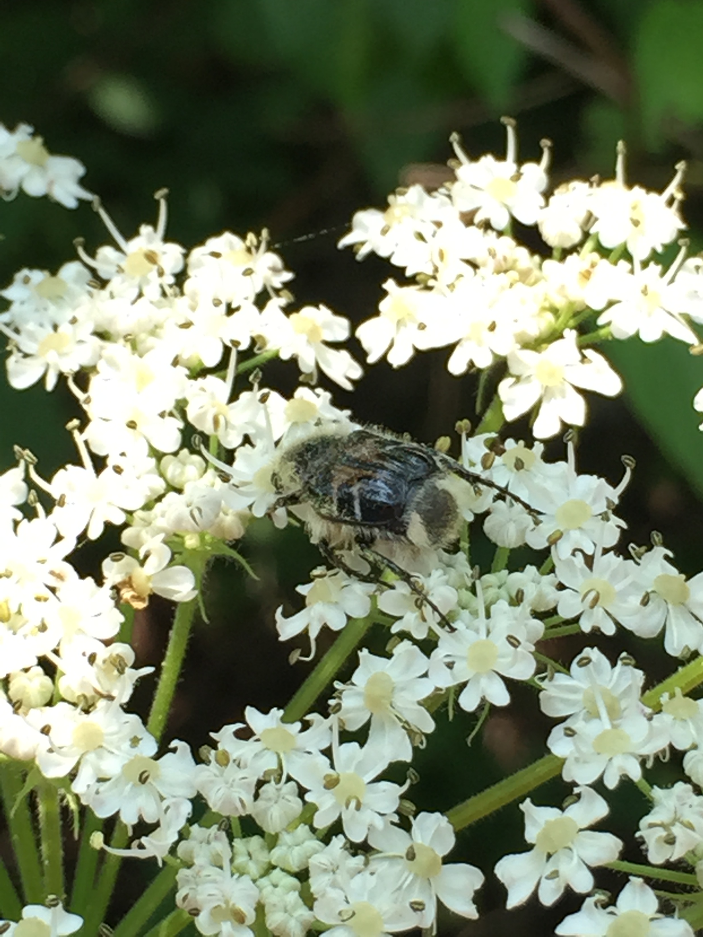 We had this part of the park to ourselves. One clean washroom, one picnic table, and one 2.9 km pathway through beautiful trees, shrubs, wetlands, meadows, floating walkways, tricky walkways that made us feel tough and rugged, all surrounded by beautiful yarrow, young raspberries, cattails, purple vetch, the sweetest song of the White Throated Sparrow singing Oh Canada Canada Canada to us, while baby frogs jumped out of our way and little orange butterflies led us through the pathway taking our mind off the constant buzz of mosquitos and busy bees buzzing near our ears.