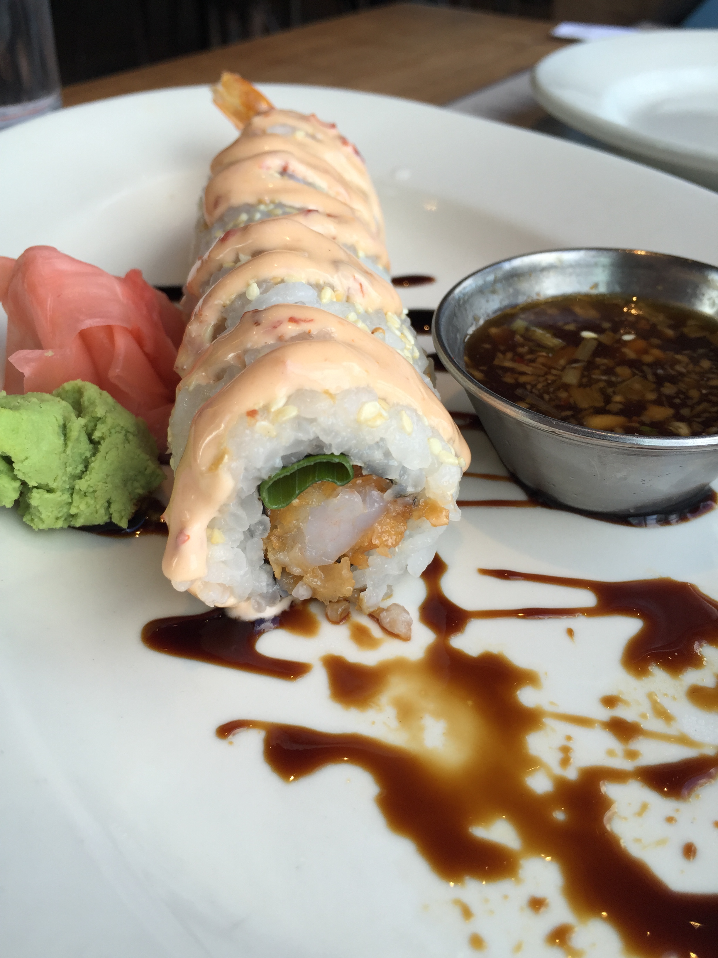 We started with a Dynamite Roll, followed by a Roast Beef French Dip for Michael, and the Lime Pepper Grilled Halibut taco for yours truly. Michael’s beef had it’s tough bits, which is unfortunate. My tacos were super-delicious. I would order them again. Michael would pass on the beef dip.