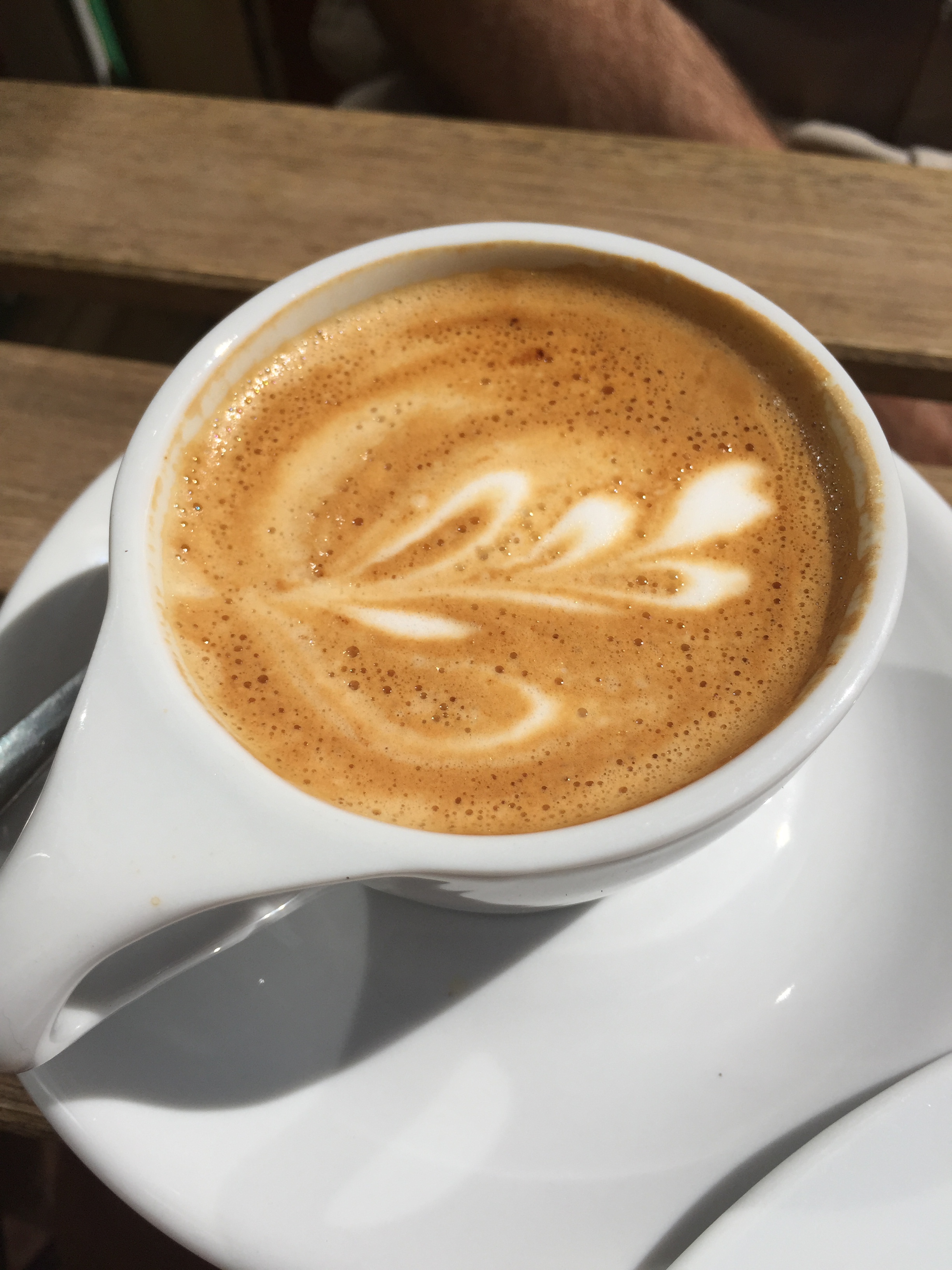 The shop itself was nice and tidy. Our order was taken and we took our number and found ourselves a sunny table for two. Shortly thereafter our coffees, and a tomato ricotta tartine arrived.
