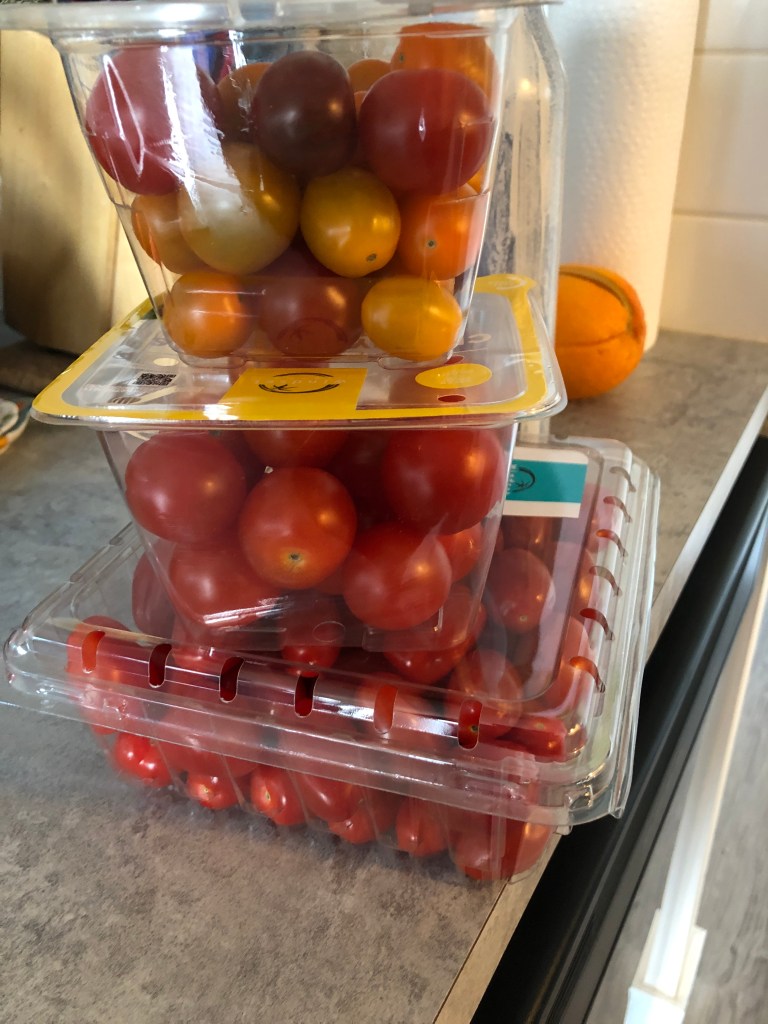This is what happens when you are not clear in your instructions when ordering online. I thought I asked for one package tomatoes.